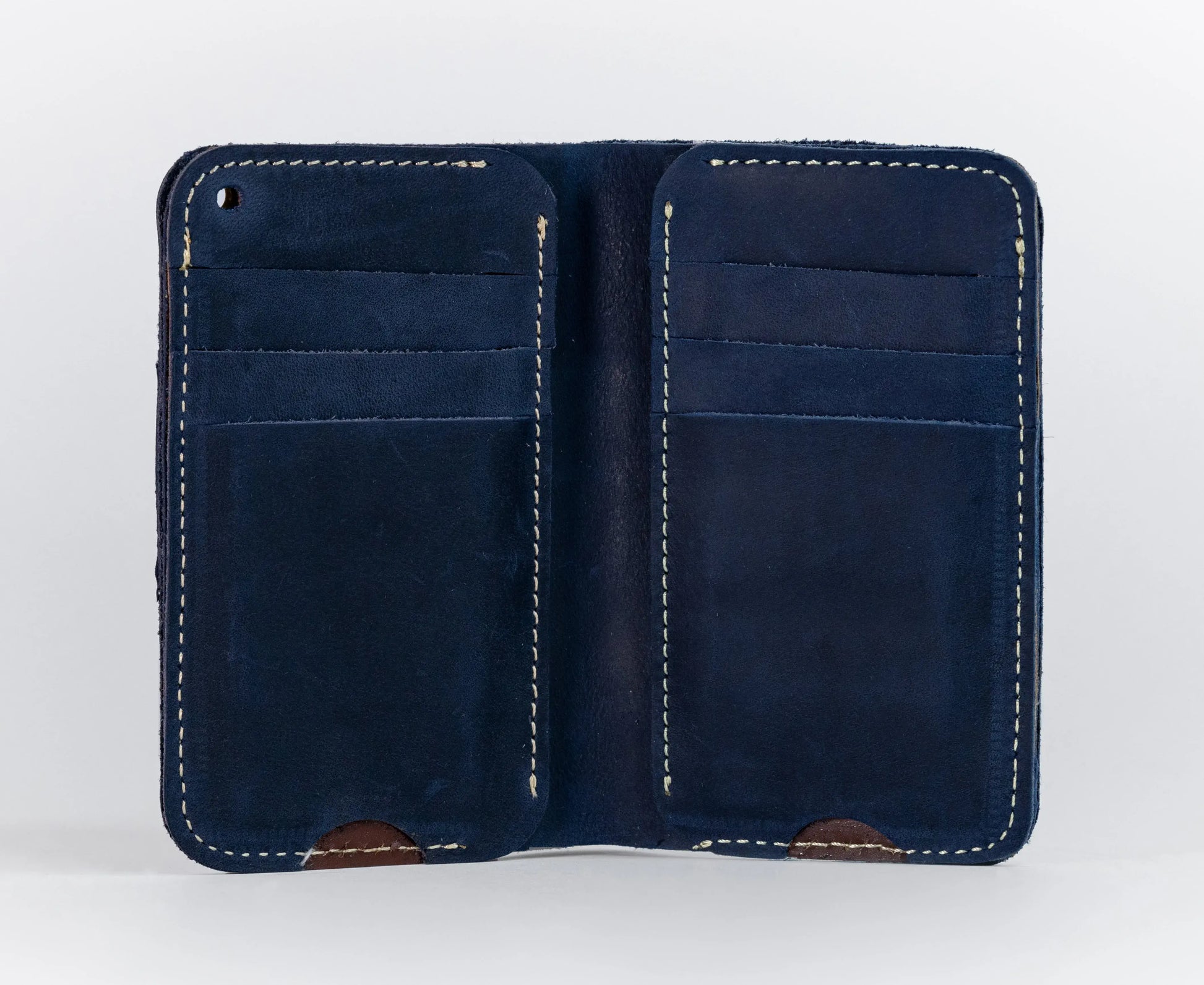 Slim Atlantic Vertical Leather Wallet - Matt Blue